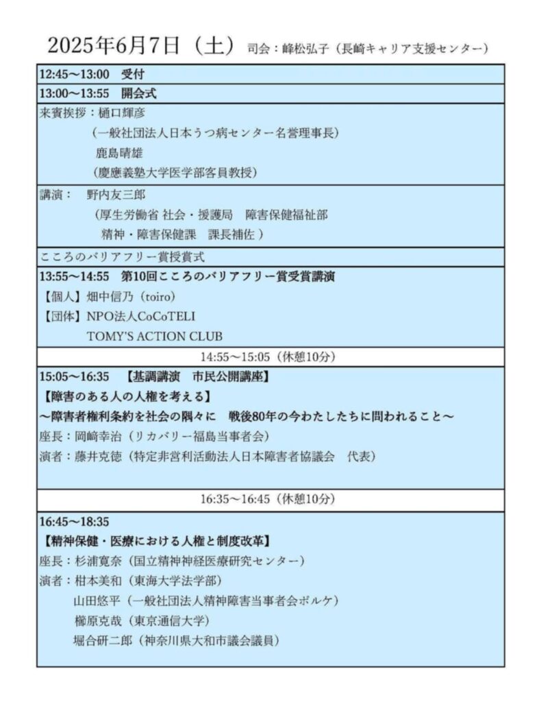 公益社団法人 第7回 こころのバリアフリー研究会総会(オンライン)